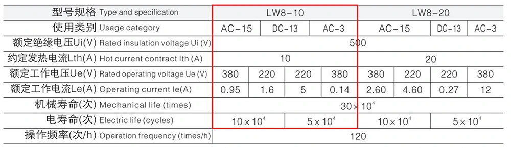 Thẻ thông số LW8-10