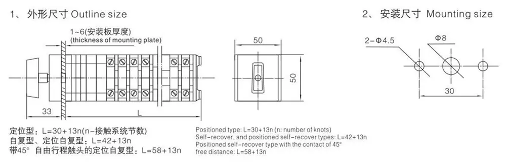 - Lắp đặt linh hoạt: Công tắc cam điều khiển tay cầm xoay phím 16A có kích thước nhỏ gọn, cho phép triển khai linh hoạt trong không gian hạn chế và thích ứng với các yêu cầu lắp đặt thiết bị khác nhau.