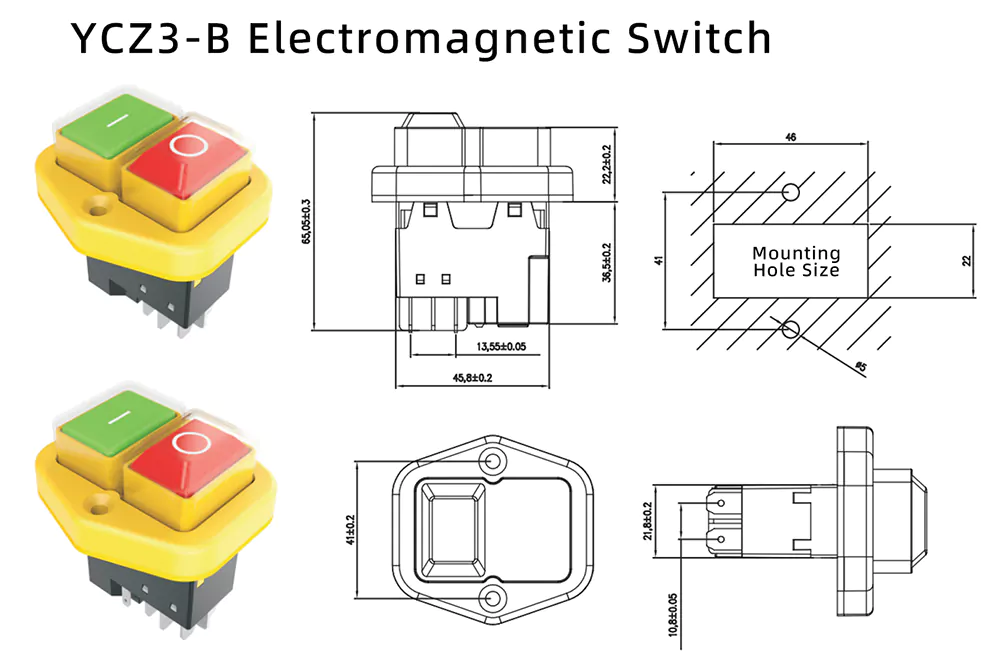 Với hơn 30 năm tích lũy sản xuất chuyên sâu trong ngành điện, Chiết Giang Yaming Electric nổi bật như một nhà máy hàng đầu Trung Quốc. Công tắc điện đáng tin cậy của chúng tôi đã được khách hàng toàn cầu công nhận rộng rãi nhờ hiệu suất ổn định. Các giải pháp hỗ trợ tích hợp và hợp tác OEM tùy chỉnh được cung cấp để phục vụ người mua số lượng lớn quốc tế và khách hàng doanh nghiệp. Model YCZ3-B, Công tắc điện từ nút nhấn kim cương rộng màu vàng 16A, được sản xuất với tay nghề tinh xảo và kiểm soát chất lượng tổng thể nghiêm ngặt. Tuổi thọ sử dụng lâu dài, hiệu suất tải nặng vượt trội và khả năng chống thấm nước & chống bụi tuyệt vời là những ưu điểm cốt lõi của nó. Các đầu cắm bên ngoài được cài đặt sẵn cho phép kết nối nhanh với các thiết bị quá tải nhiệt, công tắc giới hạn, bộ phận điều khiển nhiệt độ và cảm biến để bảo vệ an toàn toàn mạch. Nó thực hiện cắt điện chính nhanh chóng khi có bất thường về mặt cơ học, ngăn ngừa đáng kể các tai nạn an toàn công nghiệp.