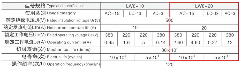 Thẻ thông số LW8-20