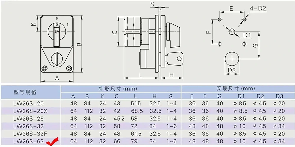 Công tắc cam chuyển đổi điều khiển phím LW26 63A có nhiều tùy chọn phân loại khác nhau để đáp ứng nhu cầu cá nhân hóa của các tình huống ứng dụng khác nhau. Việc phân loại và phạm vi ứng dụng cụ thể như sau:
