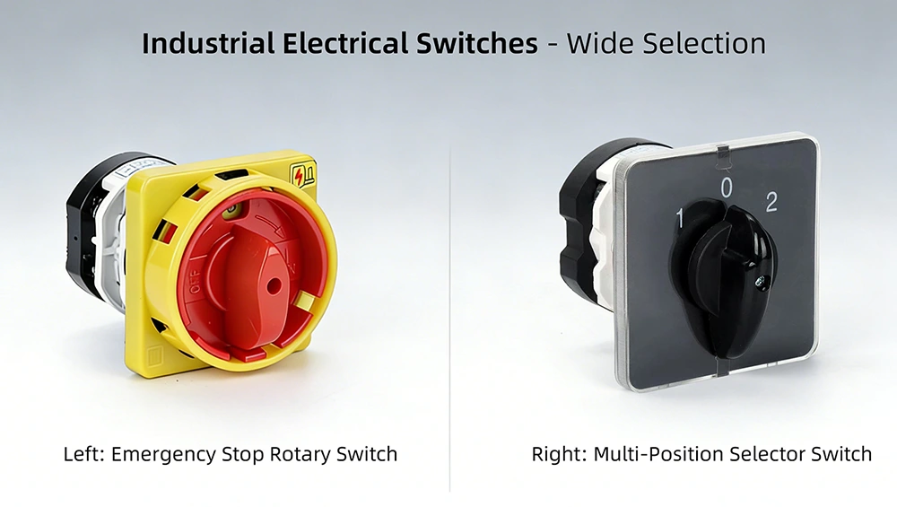 Tận dụng hiệu suất ổn định và các chức năng linh hoạt, Công tắc cam xoay kết hợp ba vị trí YAMING LW31 50A được sử dụng rộng rãi trong nhiều lĩnh vực công nghiệp khác nhau, thể hiện danh tiếng đáng tin cậy của YAMING với tư cách là nhà sản xuất linh kiện điện chất lượng cao: